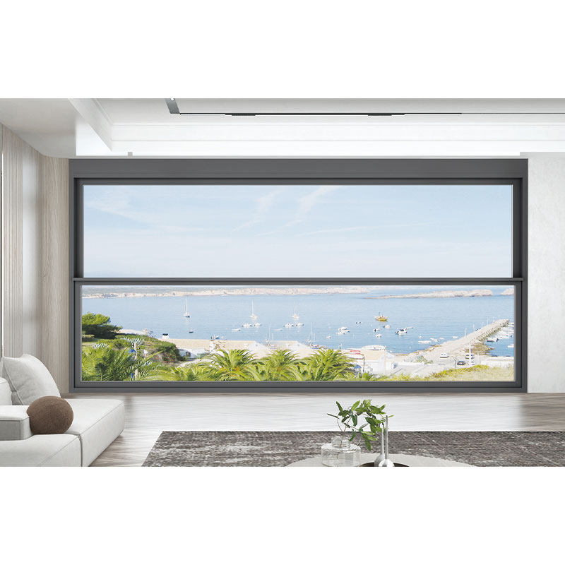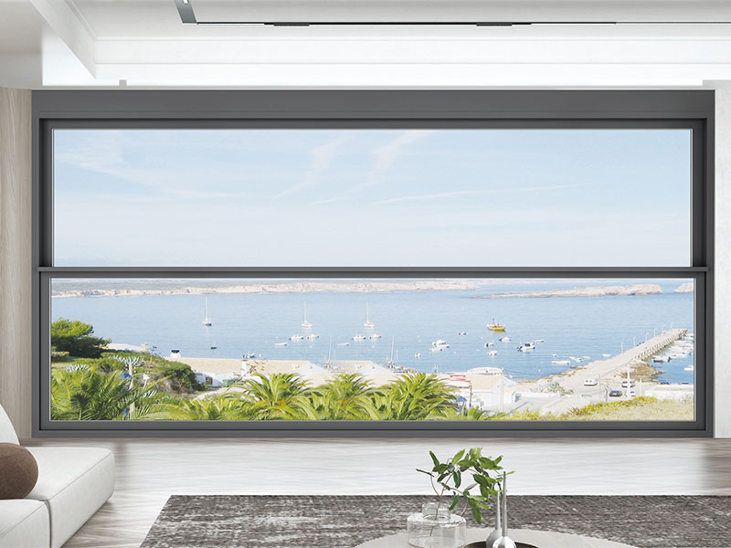 Применена вертикальная компоновка с двумя створками сверхбольшого размера и дизайн с узкими рамками (или заподлицо), что максимизирует площадь остекления и беспрепятственно открывает вид на морской пейзаж или ландшафт, создавая «панорамный» визуальный опыт. Тонкая обработка поверхности профиля в тёмно-сером цвете (или цвет по индивидуальному заказу) подходит для различных стилей интерьера, таких как современный минимализм и лёгкая роскошь, не только улучшая естественное освещение, но и становясь эстетическим акцентом в пространстве.